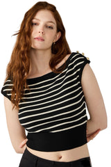 the sarita striped on or off the shoulder top is where laid-back meets luxe. made from soft midweight knit fabric, this top delivers effortless tyle with its chic on or off shoulder design.