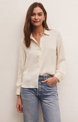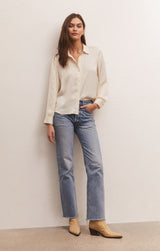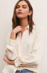 On the dressier side of things, we're introducing the Serenity Luxe Sheen Top. Made using Poly Sheen fabric, this breezy blouse features a relaxed fit, and dyed to match buttons down the front. Wear it as a shirt jacket or buttoned up... pair it with your fave pants, dress or shorts for an instantly elevated look.