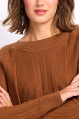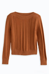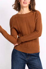 Boat neck Long sleeves Pullover style Mixed rib-knit