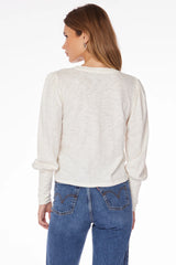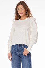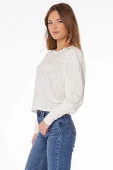 The crewneck tee gets a stylish update this season, with a boxy cut and shirred sleeve details for added volume. This slubbed jersey long sleeve style in off-white is an elevated choice for day-to-day wear, pairing well with denim.