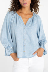 shirred chambray flora shirt