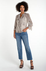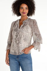 ruffle front blouse | animal print