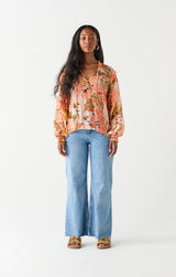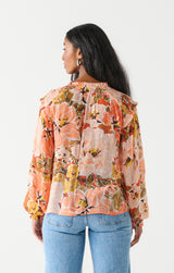 Get into the colours of the season with Dex's smocked shoulder blouse - featuring an orange and floral print that gives tropical vibes, while the peasant sleeves and airy movement of this piece make it a cool & comfortable addition to your summer wardrobe.