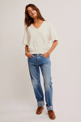 An ultra-cool, laidback essential, this short-sleeve pullover from We the Free is featured in a textured fabrication with a V-neckline and thick ribbed hem for a unique twist on a typical tee.