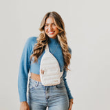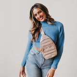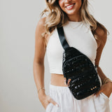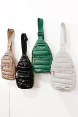 Introducing our new Sonali Sling Bag! This shiny puffer sling is the must have bag of the year. It has an adjustable strap, interior pouch pocket, exterior zipper pocket, and it’s comfortable, light weight, and beyond stylish. The Sonali is available in 4 colors allowing you to rock it all year long.