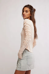 Elevate your wardrobe with the Free People Hope Henley! this top offers a stylish and slim-fitting silhouette that is perfect for any occasion. Features a trendy henley-neckline and chic ruched sleeves. you will love the comfort and style of this must-have top.