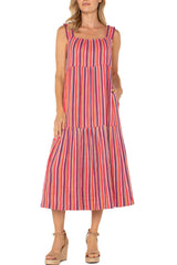 stripe tiered midi sundress