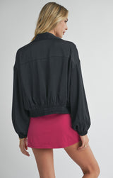 Embrace sweet style with Sadie & Sage's "Sweet Treat" jacket. This zip-up jacket not only adds a touch of cute to any outfit, but its easy closure and practical design make it perfect for daily wear. Treat yourself to this versatile and adorable addition to your wardrobe!