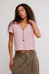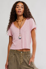Perfect for layering, this short-sleeved tee from we the free is featured in a boxy cut and a V-neckline for endless outfitting potential.