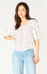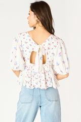 This dex tie back top features a charming floral print that adds a feminine touch to any outfit. With an adorable tie back detail, this top is both stylish and functional. Perfect for adding to your favorite pair of denim.
