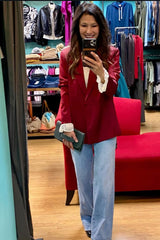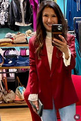 Command attention in the bold and efforless chic Tilda satin blazer.  showing off a tailored silhouette, a single button closure and notch lapels, this silky jacket exudes a polished vibe and pairs perfectly with your favorite denim for a casual look or with a straight-leg slack.