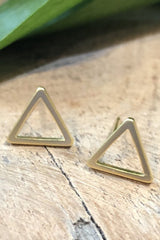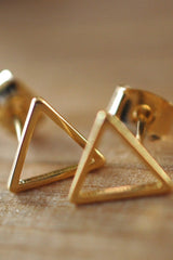 Simplistic is this design's specialty. These cute little gold plated triangle earrings are a safe bet when packing for a long trip or when rushing out the door. You can guarantee that they will go with almost everything you own and will never be too much. They sit prettily on hypoallergenic posts for comfort and security. Add a little geometric flair to your favorite work or play outfit!