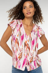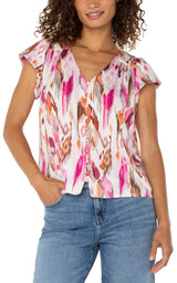 This button-front knit top is flirty and romantic! Featuring a V-neck and flutter sleeves, this top will take you from season-to-season. Pair it with jeans or shorts for a night out on the town.