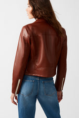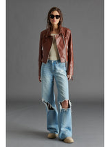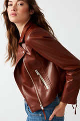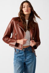 get ready to rev up your fall style with the Vinka Jacket! Available in cognac, this playful biker jacket is a must-have for the season. With its trendy design, it adds a touch of fun and edginess to any outfit, making it the perfect statement piece for those crisp autumn days.