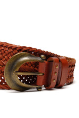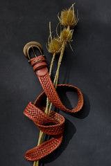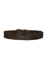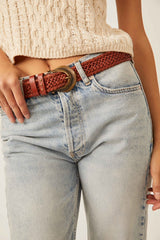 A classic leather belt gets an update with this intricate belt from We The Free, featuring a detailed woven band and chunky Western buckle for a chic touch.