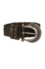 Features: Medium width, suede fabrication, woven design, adjustable fit, chunky Western buckle