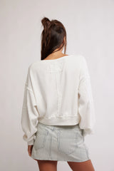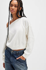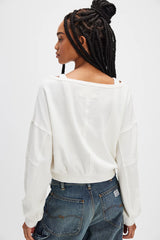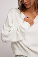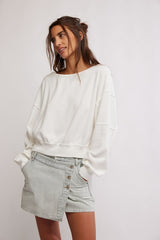 So essential from the we the free collection, this pullover features a textured thermal fabrication and slightly cropped fit with dropped dolman sleeves and exposed seams.