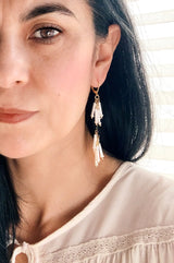 Light and fluttery, this earrings are all about soft movement. it's flirty earring is combined white bugle beads and freshwater pearls for a beautiful combination of textures. + freshwater pearls.
