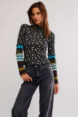 this signature FP style from We The Free is featured in the classic long-sleeve, mock-neck design with elongated, knit cuffs for the perfect eclectic finish.