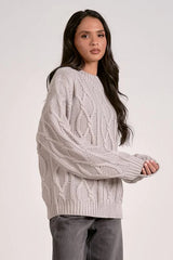 The Tristian sweater embraces timeless warmth. Its crewneck cable knit design, cuffed sleeves, and ribbed neckline offer classic comfort for chilly days.