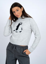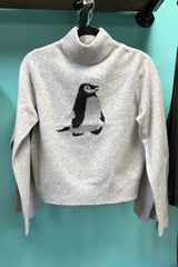 Starring the cutest penguin on this mock neck pullover! this super soft sweater knit is a total can't-resist.