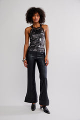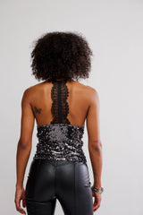 dazzle and dance the evening away in this sequin-covered cami from free people Intimately, featuring a high neckline, eyelash lace trim, and a detailed, delicate lace racerback for a head-turning, all-over-gorgeous style.