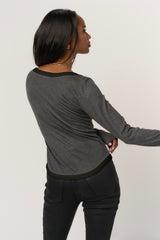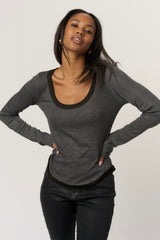 The jena contrast scoop neck rib top has a fitted silhouette and is made with soft iconic fine rib fabric. Combine those two details with a flattering contrast scoop neckline, and you have a tee that pairs well with just about anything.