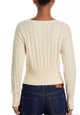 This playful design features a crew neckline and long sleeves, as well as a charming ribbon detail and front tie. The cable knit adds a touch of cozies to this cardigan. Perfect for wearing solo or layering adding some flair to your outfit!