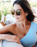 aloha fox: calling all sun-lovers in search of shades that flatter wider face shapes! Aloha Fox is the pair you’ve been waiting for. This chic metal set combines the cat-eye trend with the full coverage of an oversized frame and Polarized lenses. Hand polished polycarbonate frames ● metal temples ● Premium scratch resistant lens ● Polarized lenses offering 100% UV Protection providing superior color contrast ● Internally reinforced with 3 barrel stainless steel hinge