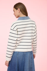 striped mix media jacket | ivory black