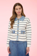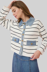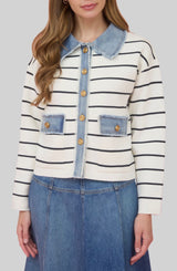 Classic stripes and fringe-finished denim detail combine to make a casual jacket you'll reach for on repeat.